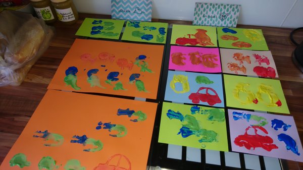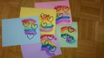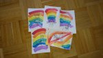 Diese Woche waren wir viel zu dritt, haben wieder viel gebastelt und zusammen gekocht. Das Wetter ist auch bombe, sodass wir jeden Tag rausgehen können. Für diese Woche stehen jede Menge Regenbögen auf dem Programm. Postkarten und Karten für Geburtstage und Muttertag.