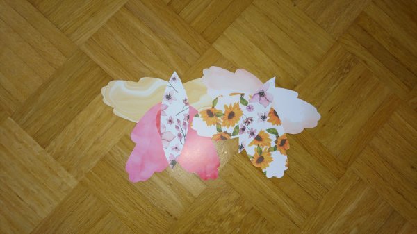 - Schmetterlinge (Fußabdrücke) aus bunt geklebten Schnipseln