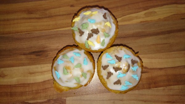 In dieser Woche ist alles ein bisschen durcheinander. Am Montag und Dienstag ist Volker zu Hause, da ich außerhäusige Termine habe. Das ist irgendwie komisch. Immerhin kriege ich ihn überredet, mit den Kindern Kekse zu backen. Das habe ich momentan nämlich so gar keine Lust zu. Aber beim Verzieren mache ich gerne mit! Es gibt neue Dino-Streusel...