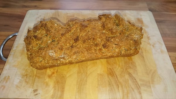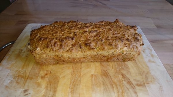 Die trockenen Zutaten mischen, dann das Wasser dazu geben. In einer geeigneten Form - wir nehmen eine Kastenform - bei 220°C etwa 40 Minuten backen.