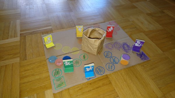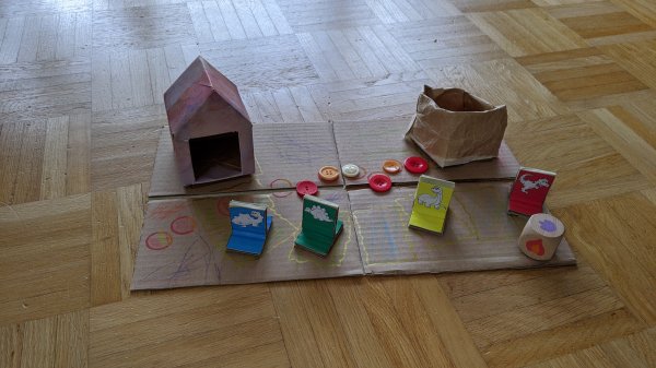 Und wir basteln unser erstes Spiel selbst. Die Idee ist zwar aus dem Internet, aber das Umsetzen macht wirklich Spaß! Außerdem ist meine Kreativität gefragt: Niklas wünscht sich Giraffen. Selbst gebastelt natürlich. Okay, dann gucken wir mal...