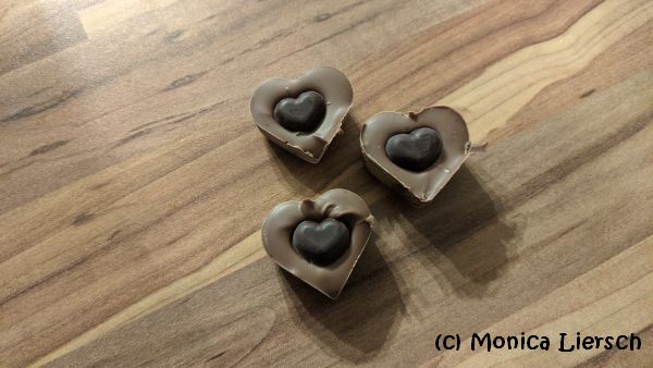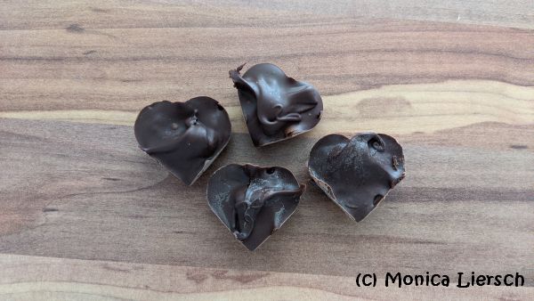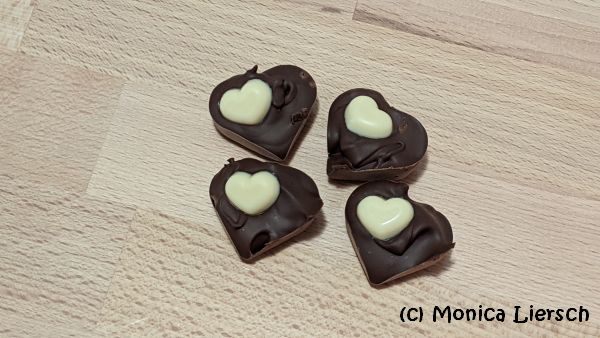 Die Pralinen müssen etwa einen Tag lang aushärten. Danach eine oder zwei Pralinen in einem Becher warmer Milch auflösen.