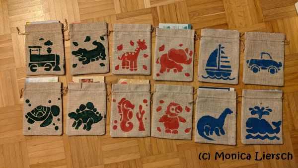 - Motive auf Stoffbeuteln anmalen