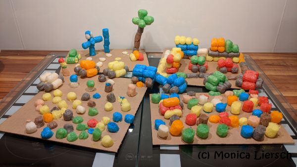 Für die Kinder steht in dieser Woche eine Mini-Chemie-Unterrichtseinheit auf dem Plan: Aggregatzustände, genau genommen fest und flüssig und zwar in Form von Wasser und Eis. Ansonsten wird wieder viel Kreativ-Kram gemacht und Lego gebaut.