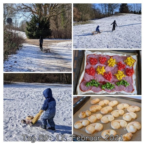 Wir haben die vorerst letzte Schließwoche der Schulen und Kindergärten zu fassen. Ich arbeite zwei Tage mobil und für zwei Tage wurde ich freigestellt. Praktischerweise schneit es in der Nacht zu Mittwoch noch einmal ordentlich und wir können zum Spielplatz und Schlitten fahren. Leider haben auch viele andere die Idee, aber es geht. Das ganze wiederholen wir am Donnerstag und am Freitag nochmal bevor wir am Sonntag mal an den Strand fahren um uns die Reste der gefrorenen Ostsee anzusehen.
