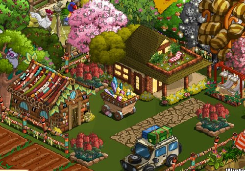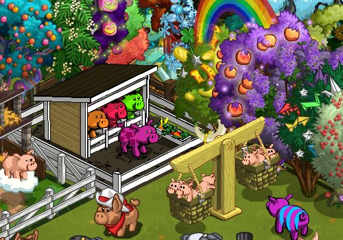 FarmVille ist ein Browser Game, das man über Facebook spielen kann. Es geht im wesentlichen darum, wie das Speil auch heißt: Um Landwirtschaft. Na gut, das war einmal. Mittlerweile kann man auch viel mit Tieren und Bäumen machen. Man kann Güter produzieren und gegen Preise eintauschen.